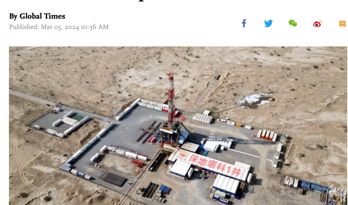 En atteignant une telle profondeur, ce puits, baptisé Shenditake 1, aura traversé dix strates continentales avant d'atteindre le système Crétacé. Pour y parvenir, la foreuse, pesant plus de 2 000 tonnes, a dû être en mesure de résister à des températures de 200° C et à des pressions 1 300 fois supérieures à celles de la surface. Des contraintes dignes des héros du blockbuster Armageddon, chargés de forer la surface d'une météorite en plein espace… Au total, ce forage automatisé de pointe aura pris 580 jours, dont 300 pour les 900 derniers mètres. À l'heure où la guerre économique pour l'accès aux terres rares reprend entre États-Unis et Chine, la Chine va ainsi bien au-delà de la seule exploitation des réserves de gaz et de pétrole du bassin du Tarim. Outre qu'elle permet d'approfondir les connaissances sur les changements climatiques de jadis et sur les mouvements des plaques tectoniques pour améliorer la prévision des séismes, une telle cartographie souterraine vise surtout, en réalité, à découvrir de nouveaux gisements de ressources. Aujourd'hui, le champ de forage de Tarim compterait 191 puits de plus de 8 000 mètres et a déjà produit 20,47 millions de tonnes de pétrole et de gaz ultra-profonds par an. De quoi en faire la plus grande base de production de pétrole et de gaz ultra-profonds du pays. À environ 10 000 mètres sous terre, ce forage aura permis de découvrir du gaz naturel en ultra-profondeur, entre 10 851 et 10 910 mètres, première découverte mondiale de ce genre à plus de 10 000 mètres de profondeur.