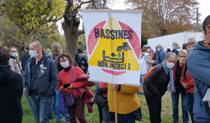 Une bassine a pour objet de pomper de l'eau dans la nappe phréatique pendant l'hiver pour permettre à des agriculteurs de la réutiliser pendant l'été. Or l'eau utilisée à des fins alimentaires pour produire végétaux et produits animaux est dix fois supérieure aux usages domestiques courants, boissons, toilette, lavages... Au-delà de la proportion entre les usages, quelles sont les ressources ? Concrètement, la bassine de Sainte-Soline entre dans le cadre d'un projet de 19 bassines dans le bassin versant de la Sèvre niortaise. L'objectif est le stockage de 8 à 9 millions de m3 (Mm3). Le chiffre parait considérable, mais la ressource pluviométrique moyenne de 822 mm/an sur les 3 350 km2 du bassin de la Sèvre Niortaise correspond à environ 2 750 Mm3. Le stockage ne représente donc que 3 pour 1000 de la pluviométrie annuelle. Le qualificatif de méga-bassine n'est donc pas justifié !