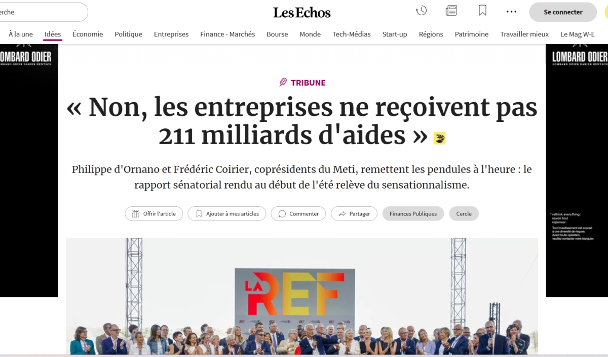 La communication politique tente régulièrement de masquer cette surfiscalité française prohibitive, en avançant des chiffres sensationnalistes sur les « aides aux entreprises ». Récemment, un rapport sénatorial a évalué à 211 milliards d'euros le montant annuel de ces soutiens, un chiffre colossal qui, dans un contexte de grande inquiétude pour les finances publiques, a fait sensation. Au-delà de la rhétorique perfide qui renvoie à l'idée de « cadeaux » ou de « privilèges », l'analyse factuelle des dispositifs réintégrés dans ce total de 211 milliards d'euros par les chefs d'entreprise concernés montre que la majeure partie de cette somme ne constitue pas un soutien à la compétitivité des entreprises privées : une partie substantielle est destinée à des acteurs comme La Poste, la SNCF ou l'audiovisuel public ; une deuxième part s'adresse aux consommateurs ou est au service de politiques publiques ; et, une troisième concerne le choix politique de très fortes exonérations sur les bas salaires : près de 75 milliards d'euros (Vie publique 2023) pour aider les personnes peu qualifiées, en faisant porter l'effort notamment sur les salariés qualifiés issus des classes moyennes. Si l'on corrige donc le chiffre de 211 milliards d'euros de toutes les aides aux entreprises qui n'en sont pas, on n'arrive qu'à 18,5 milliards au total (IFRAP 2025), pour des dispositifs ponctuels visant l'innovation ou la transmission d'entreprise.