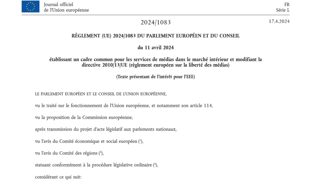 Ce texte concerne tout ce qui entre, de près ou de loin, dans la catégorie « services de médias ». De la télévision aux podcasts, de la presse en ligne aux web TV, des grandes plateformes aux petits créateurs… On peut considérer qu'il revient à instituer ce qu'Orwell appelait le « ministère de la vérité », car il instaure la création d'un organe supranational de gestion des médias, relié aux régulateurs nationaux, formant un édifice pyramidal qui centralise le pouvoir. En France, ce rôle majeur de relais revient à l'ARCOM, lequel est désormais en lien direct avec Le Crif, la fédération des centres LGBTI+, Flag!, la Licra, M'endors pas (association fondée par la fille de Gisèle Pelicot), le Mouvement du Nid, Osez le féminisme, le Planning familial, Respect Zone, Sos Homophobie, SOS Racisme et Addam. On note peut-être une légère teinte militante et idéologique. Mais ce n'est pas tout (texte en sélection, à mettre en perspective).